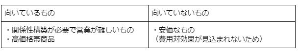 いかにインサイドセールスが効率的な営業スタイルとはいえ、向いている商品・サービスと向いていないものは存在します。