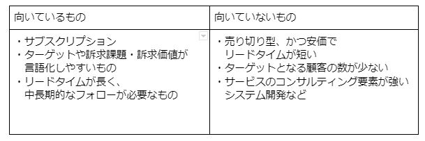 逆に、高価格帯には向かないといわれています。メールやウェブのみで商談を進めようとすると、商談機会を得ても関係構築が困難だからです。