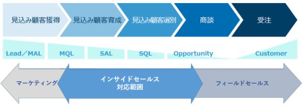 分業を行うことで、それぞれの役割とターゲットが明確になり、潜在顧客についてはインサイドセールスが集中的にナーチャリング活動を行うことで中長期的なパイプラインとして成果へとつなげることができます。