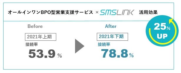 2021年下期より「SMSLINK」を活用した結果、接続率が78.8%まで向上し、約25%の接続率アップを実現しました。